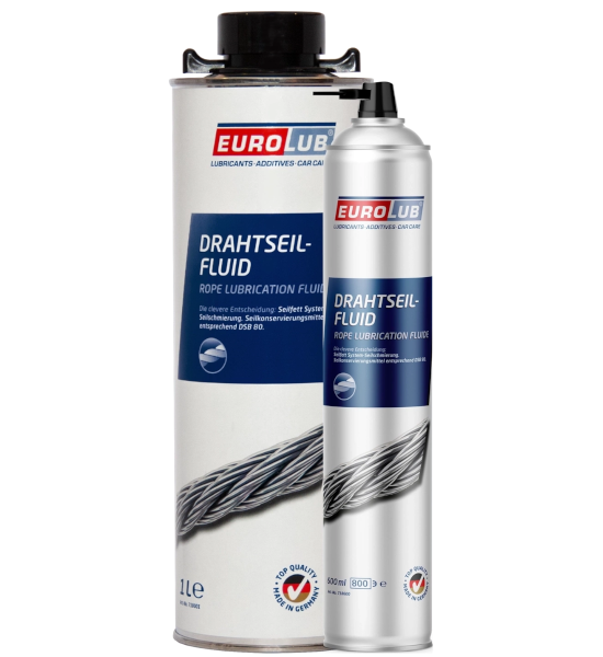 DRAHTSEILFLUID wird zur Pflege und Wartung von verschiedensten Drahtseilen eingesetzt. Anwendungsgebiete sind z.B. industriell eingesetzte Seile, aber auch Seile in Tagebaugroßgeräten oder Baggern. DRAHTSEILFLUID kann als Spray oder in flüssiger Form bezogen und mittels Sprühen, Streichen, Rollen o.ä. bei Normaltemperatur auf gereinigte Seiloberflächen aufgebracht werden. Nach dem Verdunsten des aromatenfreien Lösungsmittels, je nach klimatischen Verhältnissen 2-8 Stunden, ist der Schmierfilm fertig ausgebildet.